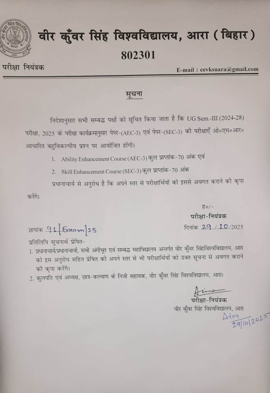 Notice for Veer Kunwar Singh University Convocation 2024 Meeting |